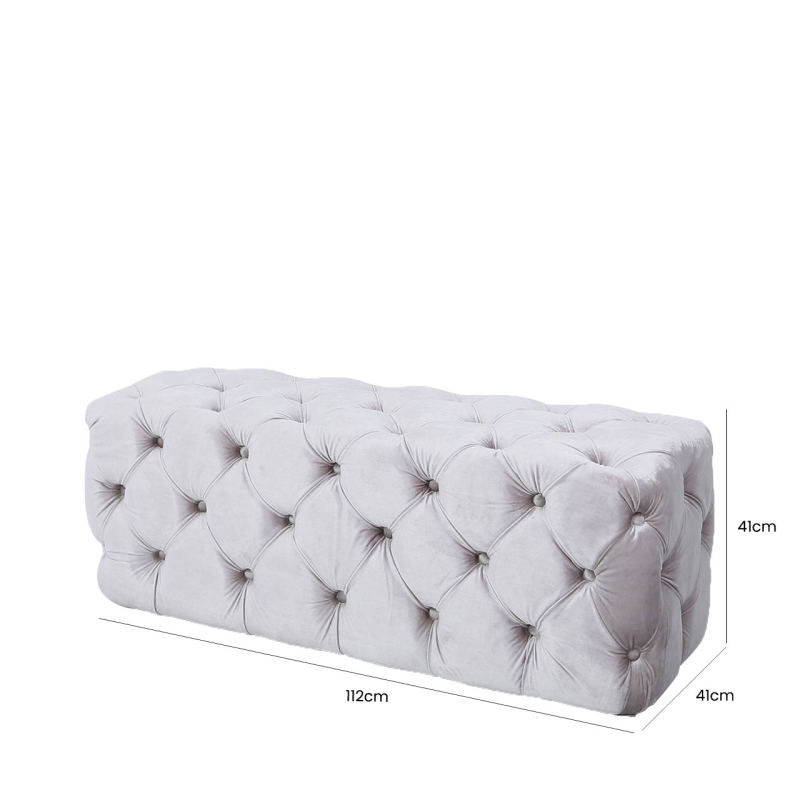 A stylish and functional accent, or even in your entryway as a comfortable place to sit while you put on your shoes. With its combination of style and comfort, this white boucle round ottoman with a chrome base is a must-have piece for any home.
