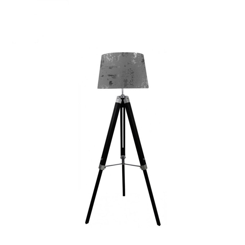 Black Wood Tripod Floor Lamp with Linen Empire Grey Shade
