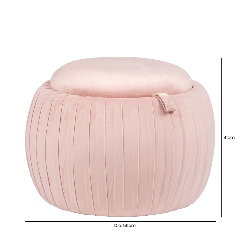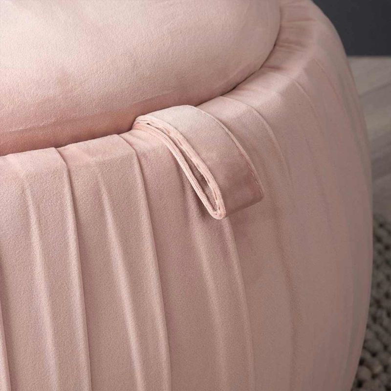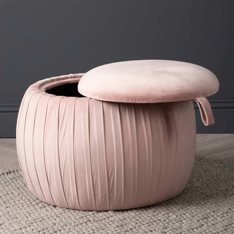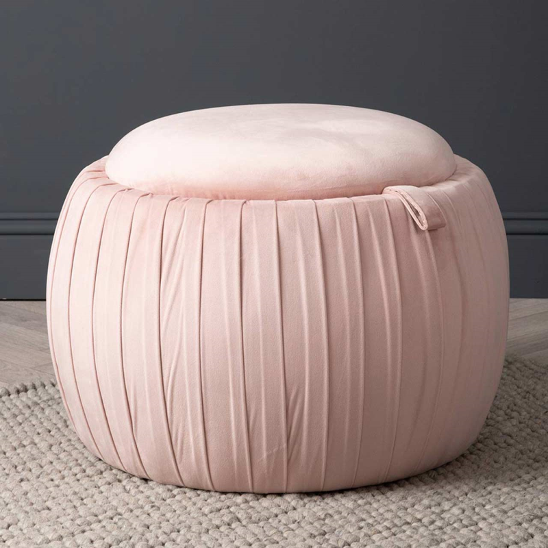 Comfortable, sophisticated and trendy; the value blush pink storage stool with pleated sides is the perfect way to add occasional seating while also having space to store a blanket or two!