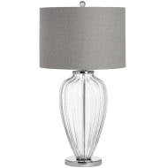 A classic lamp which features a timeless herringbone shade and a fluted glass base with chrome finishes. Suitable for any interior scheme.