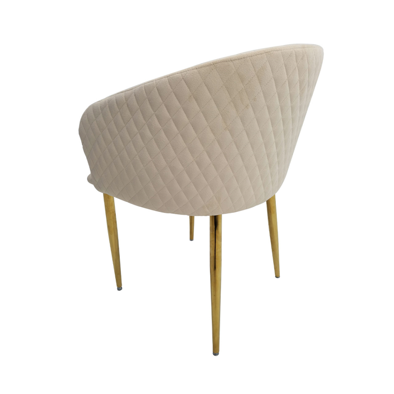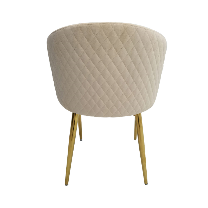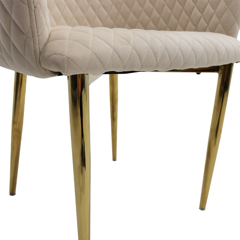 The Cade Cream Velvet with Gold Legs Dining Chair, a harmonious fusion of luxury and style. Crafted with stainless steel, upholstered in exquisite cream velvet, and supported by elegant gold legs, this chair exudes timeless elegance. Elevate your dining space with this stunning piece, offering both comfort and visual allure for memorable dining experiences."
