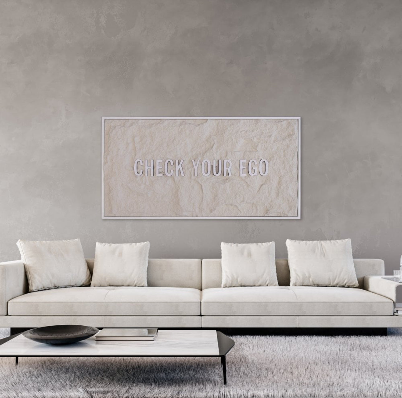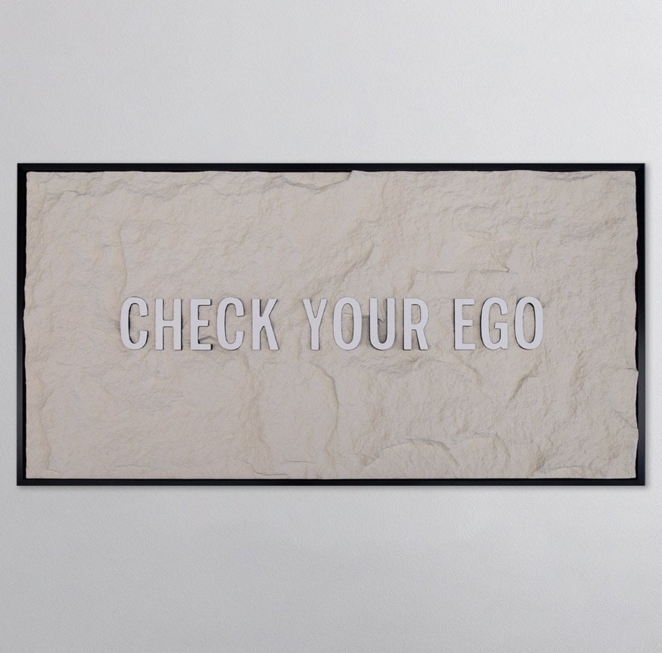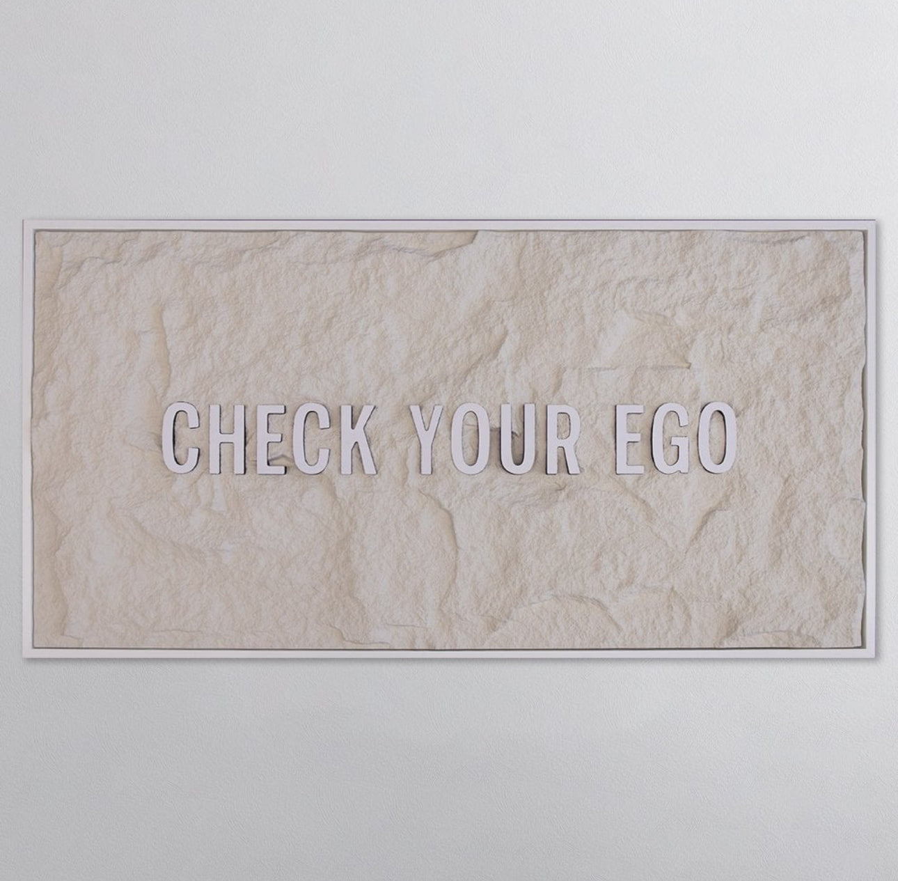 CHECK YOUR EGO - WHITE 3D TEXT ON OFF WHITE