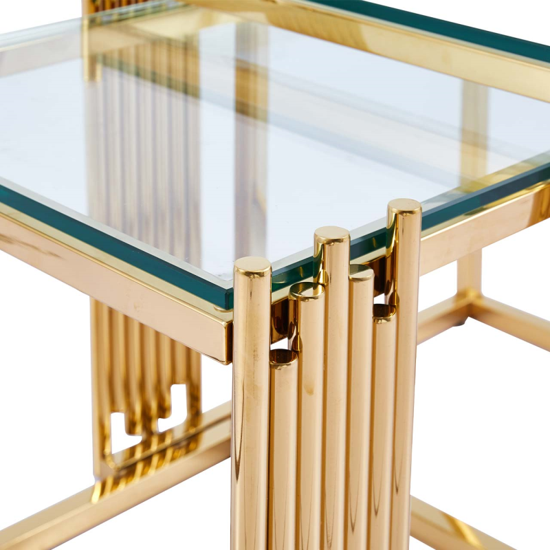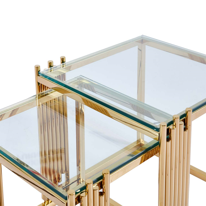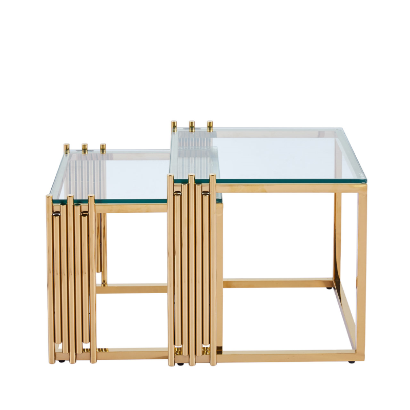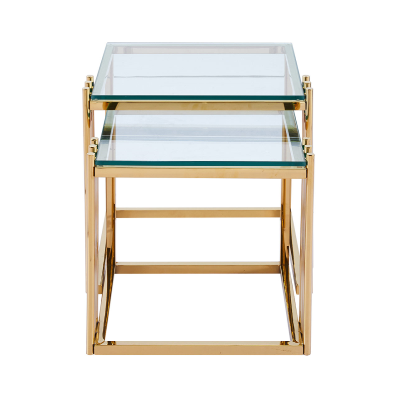 Cohen Set of 2 Gold Steel Tubes and Clear Glass Nesting Table