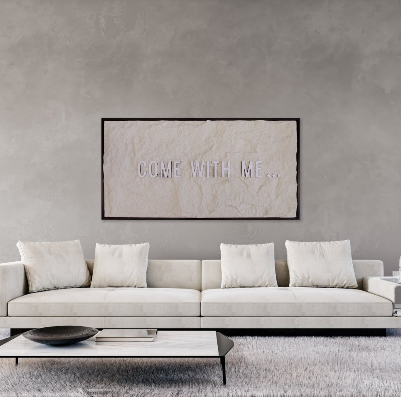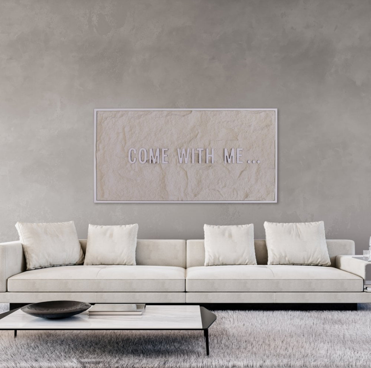 COME WITH ME - WHITE 3D TEXT ON OFF WHITE