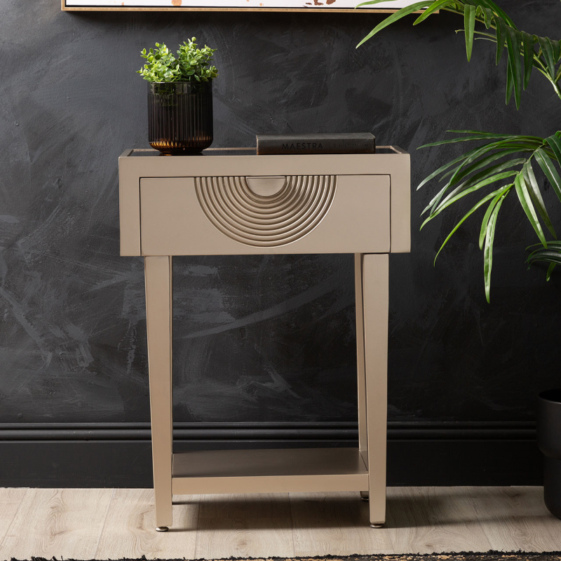 Elon 1 Drawer Telephone Table Gold with Gold Mirror Top and Silver Handles