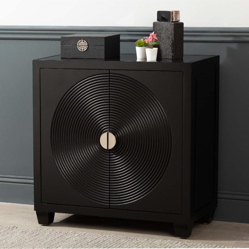 With its astonishing design, this 2 door cabinet is a visual pleasure. It has metallic knobs which embed into the round door pattern design on the doors of the cabinet. Sturdy as it can be, it comes with a lot of storage space.
