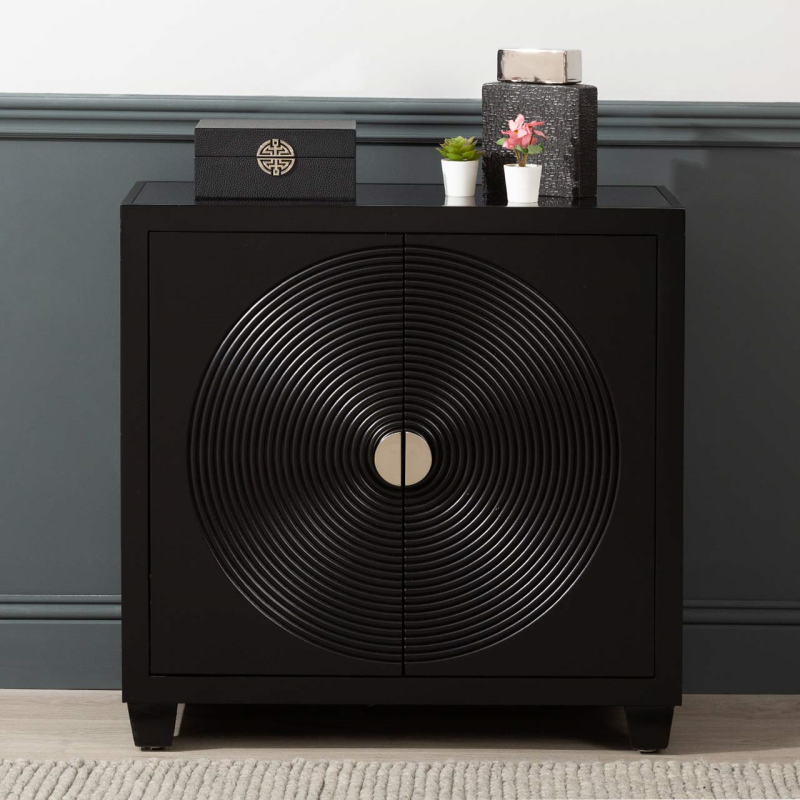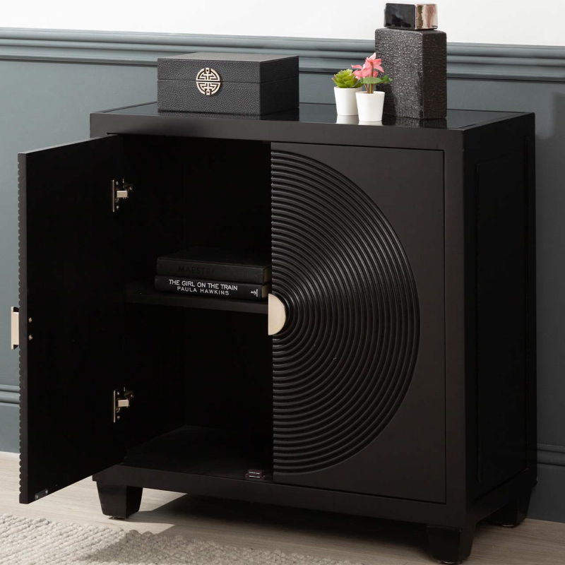 Elon 2 Door Cabinet Black With Smoked Mirror Top
