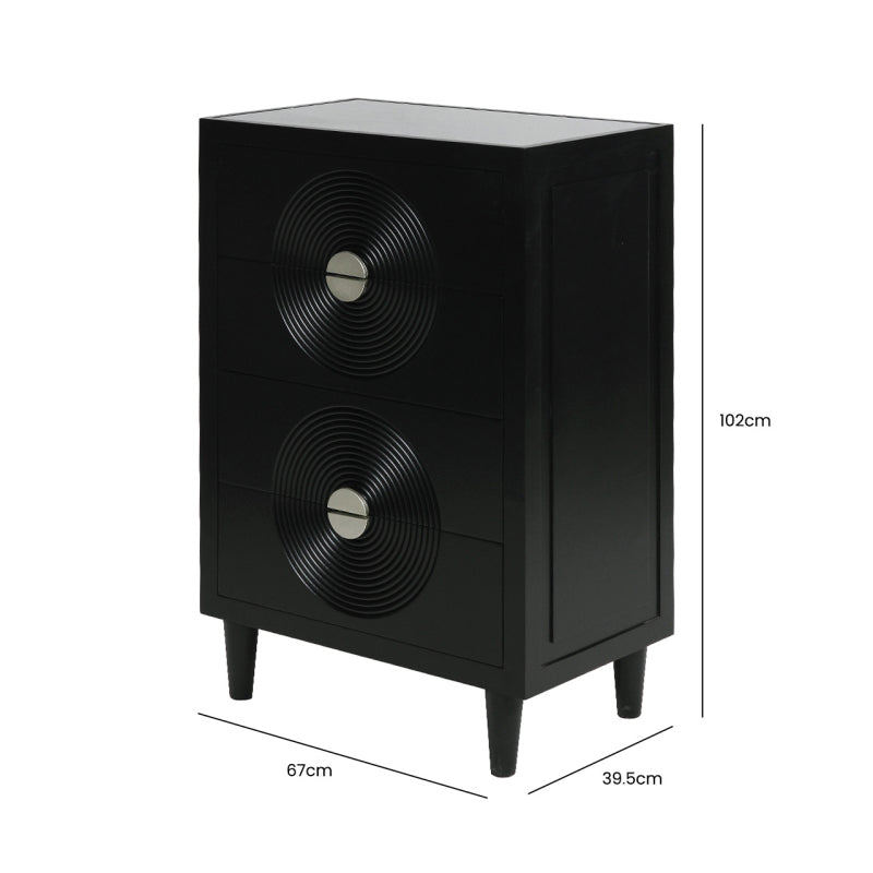 Elon 4 Drawer Tallboy Cabinet Black with SM Mirror