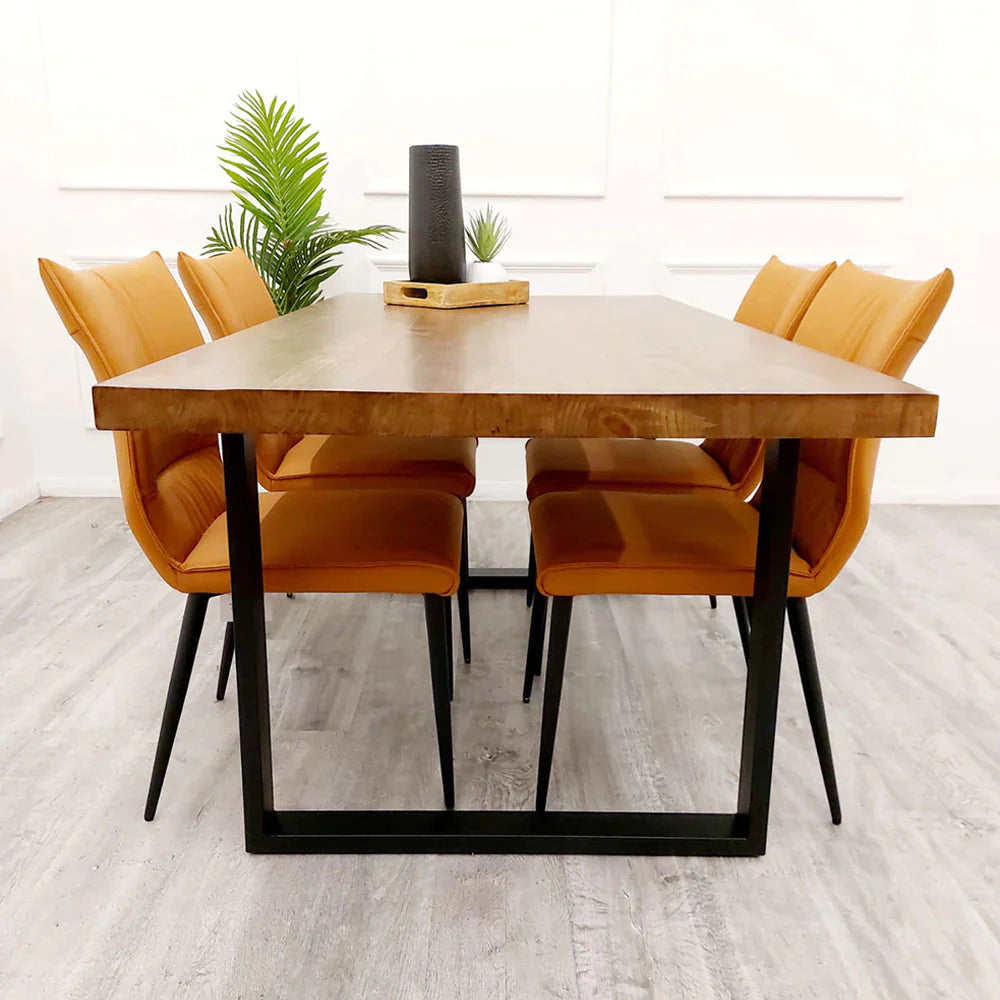 Industrial design is captured in our new Fretta 1.8 Dining Table. Featuring high quality solid Pine wood together with Matt Black Metal Square Legs.