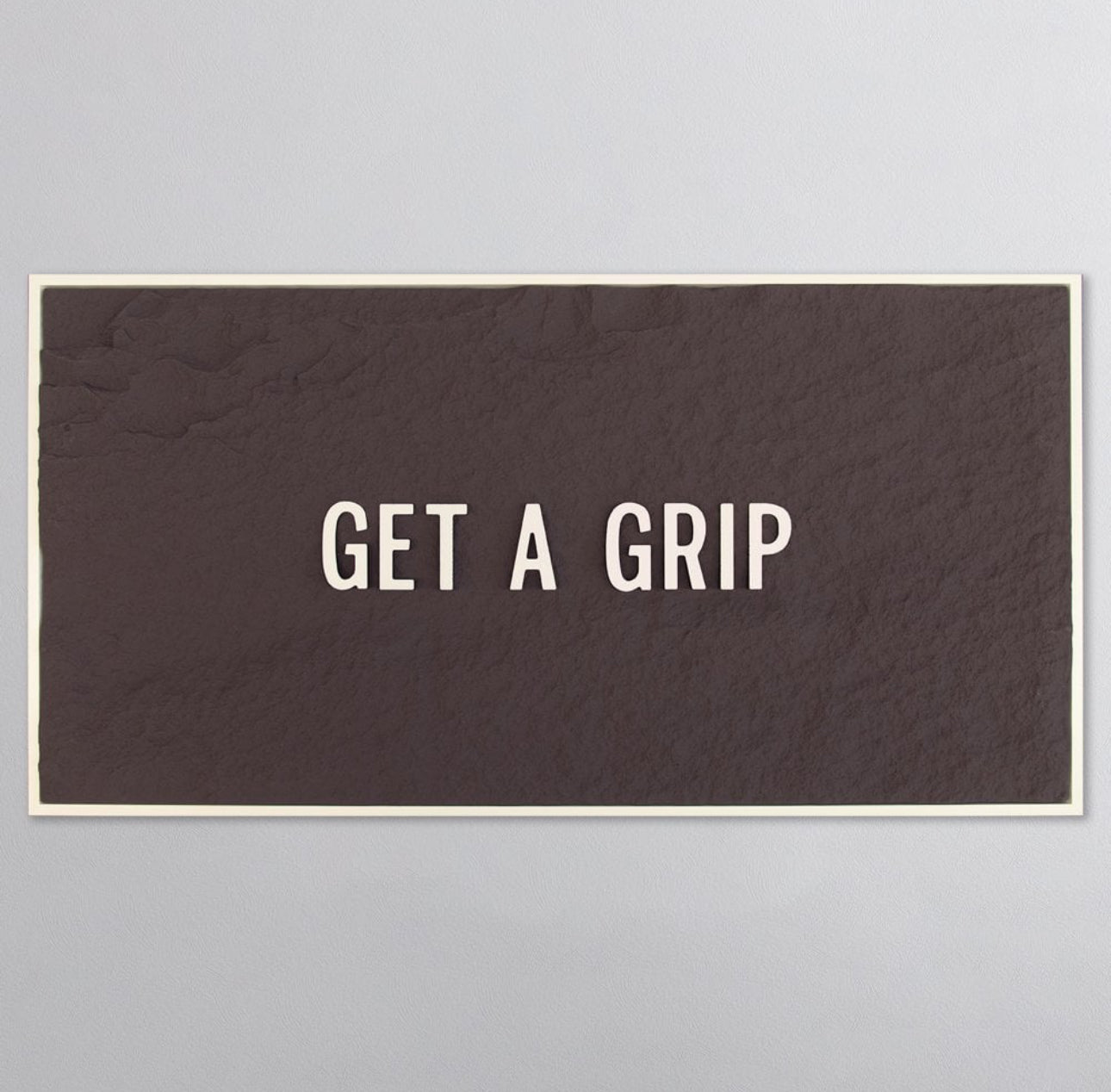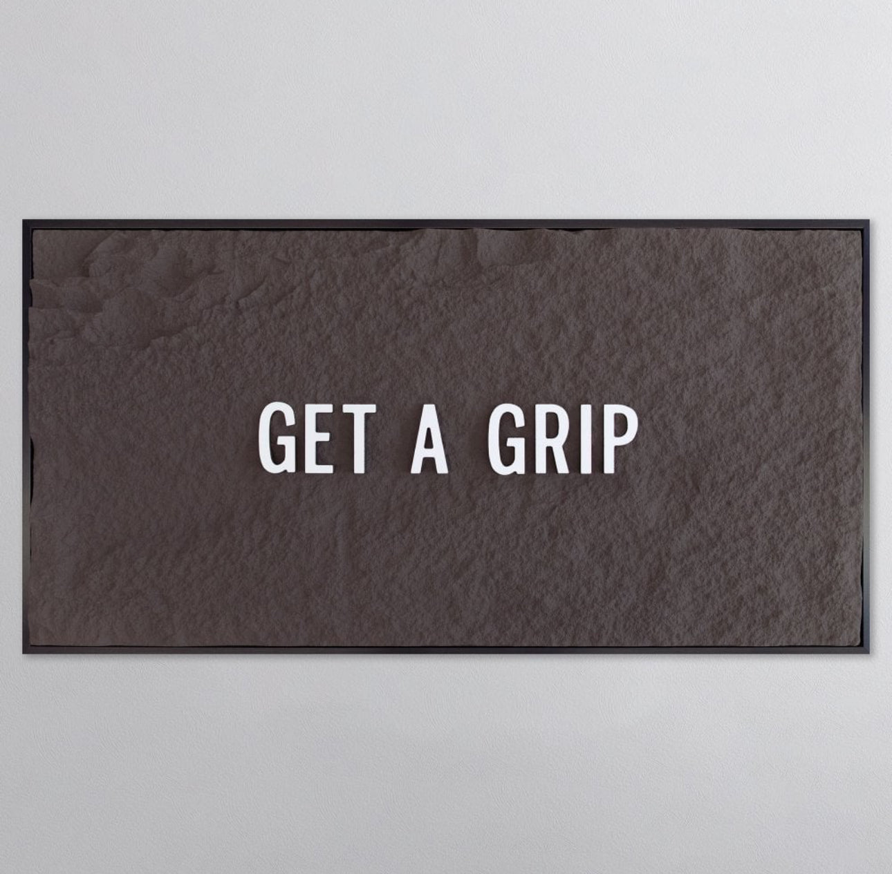 GET A GRIP - WHITE 3D TEXT ON ESPRESSO
