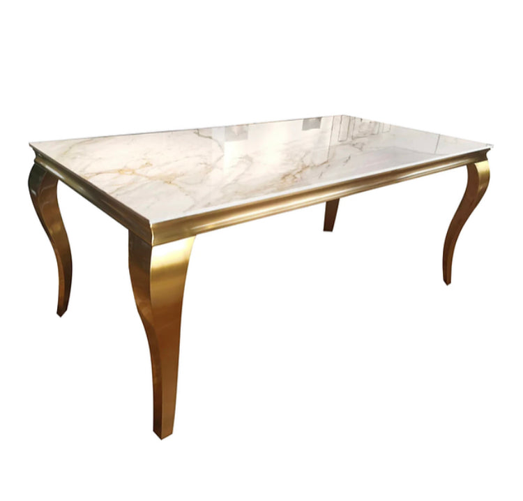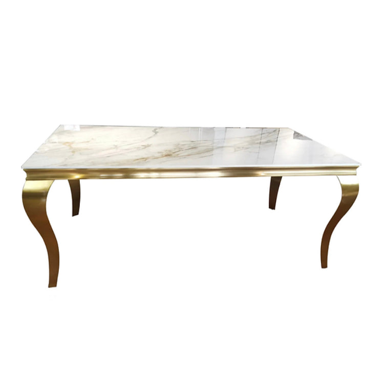Exude style and sophistication in your dining room with this sleek glass dining table. Featuring a V shaped metallic base with a toughened glass table top designed to withstand heavy usage.