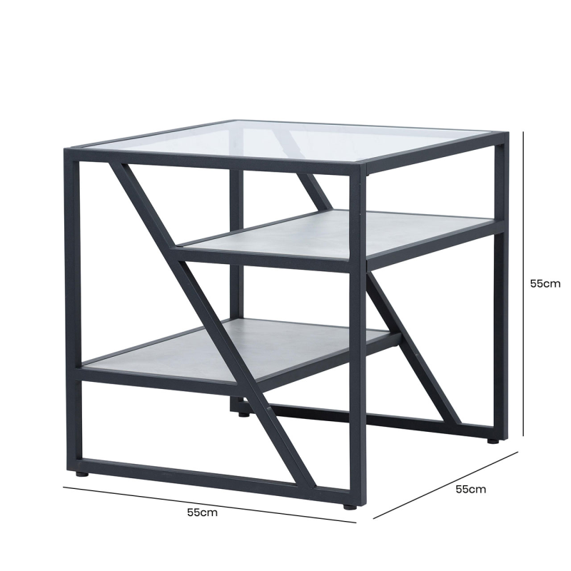 Bring a glamorous touch to your living room with the Value Apex chrome end table. Comprising of a steel chrome effect frame showcasing a bold geometric design on the table ends, it is completed by a tempered smoked glass table top. Also perfect as lamp/sofa/bedside/display/occasional tables