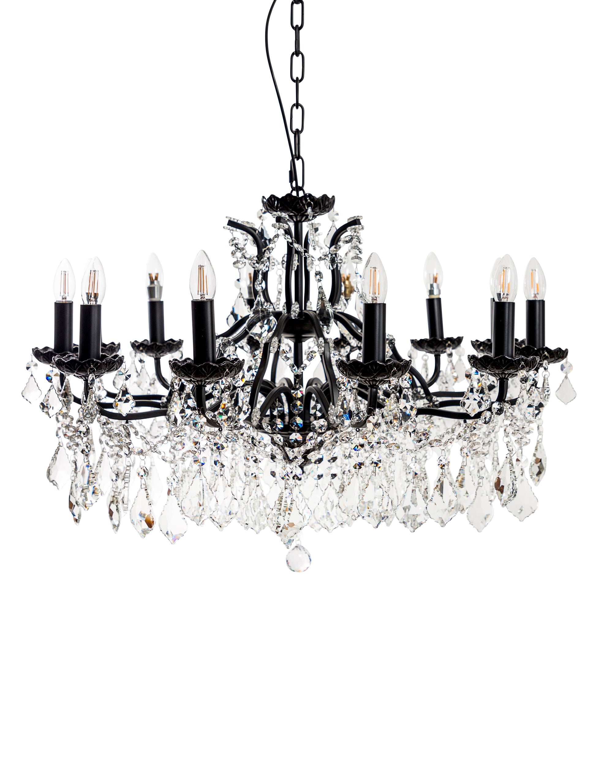 LARGE 12 BRANCH MATT BLACK SHALLOW CHANDELIER