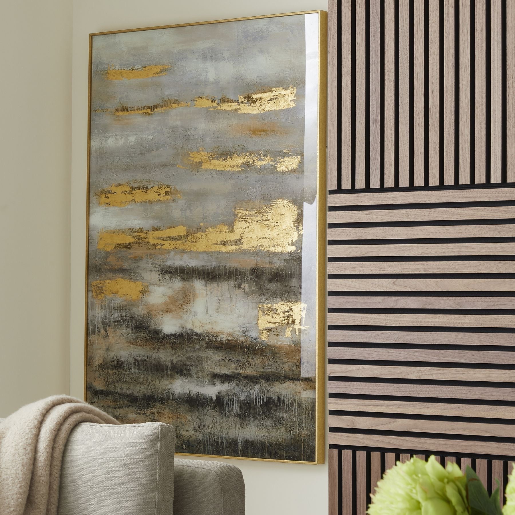 Large Abstract Grey And Gold Glass Image With Gold Frame