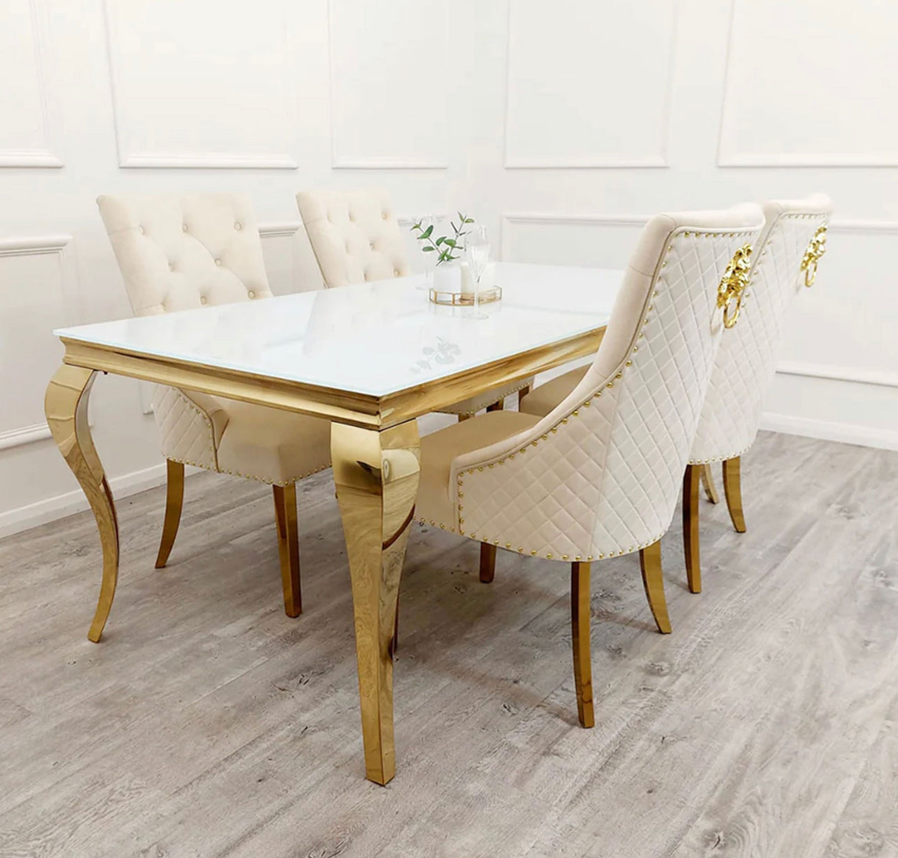 Louis 1.5m Gold Dining Table 4 Chairs White Top