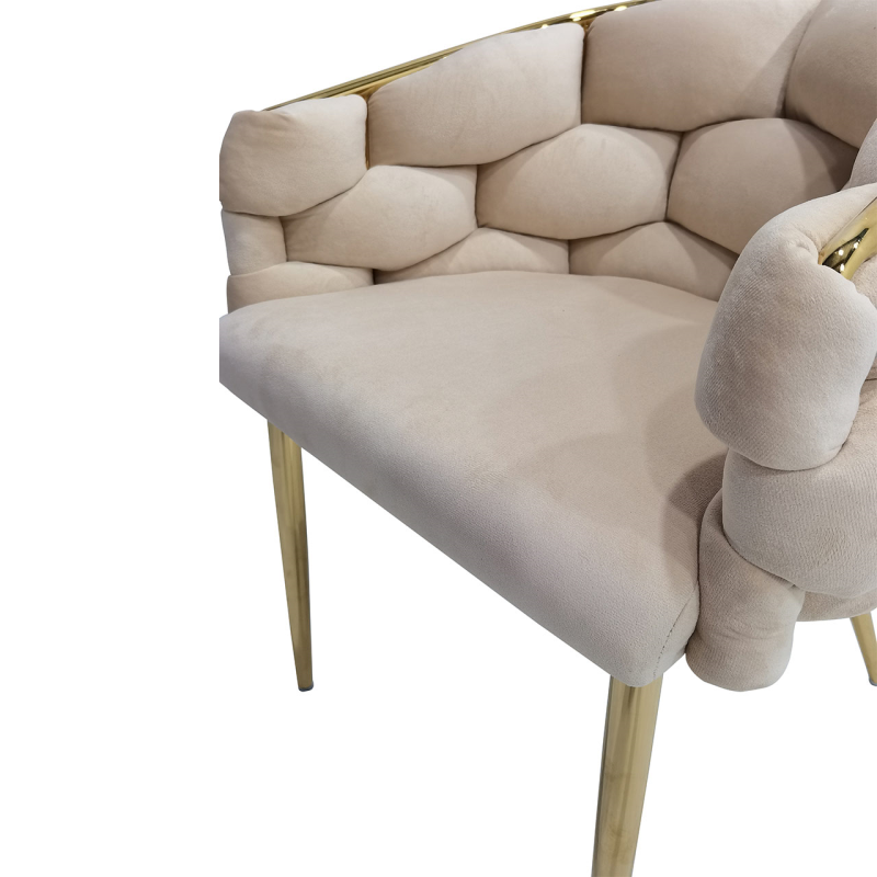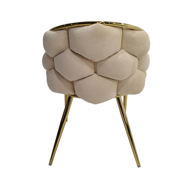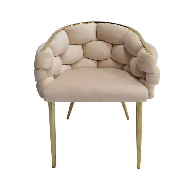 Margaux Cream Velvet Dining Chair with Gold Legs vivid tone and eye-catching lines, this accent chair is a perfect pick for your Dining room, living room, bedroom, and makeup room. Featuring the ergonomic backrest design, it encourages extra comfort as you kick back with your latest read or sit and chat with friends. Upholstered in soft velvet and filled with elastic foam, this armless chair offers you a great seating experience. Come with stainless steel legs in a gold finish, which ensures sturdy support and adds a modern appeal as well. A perfect addition to update your on-trend spaces.