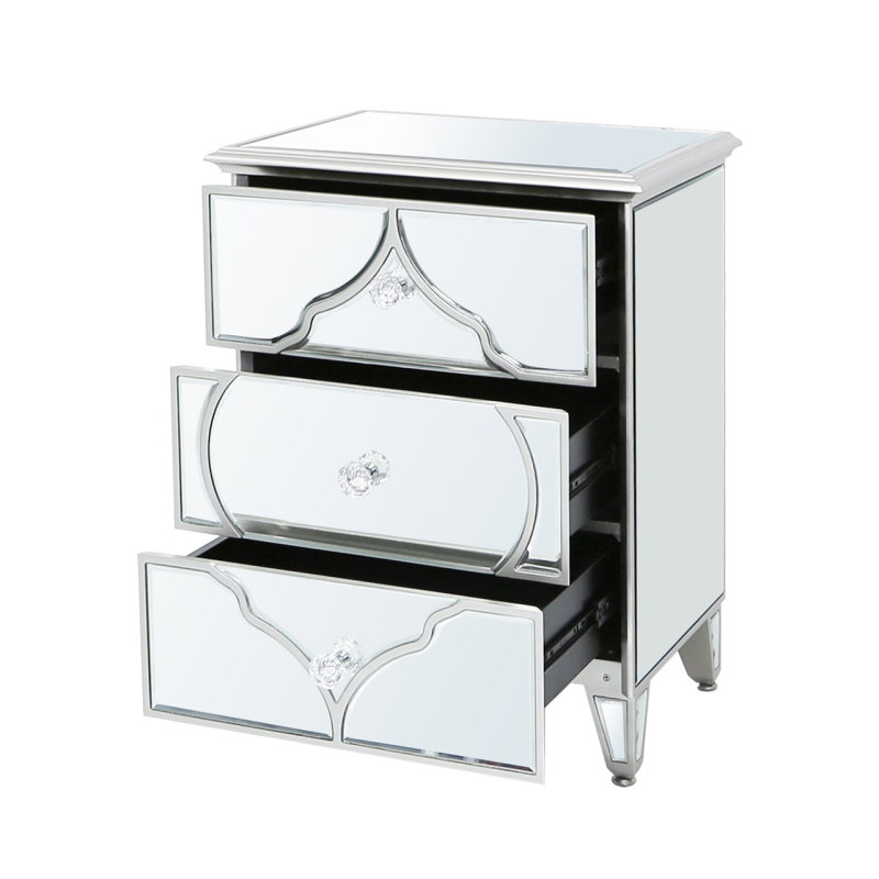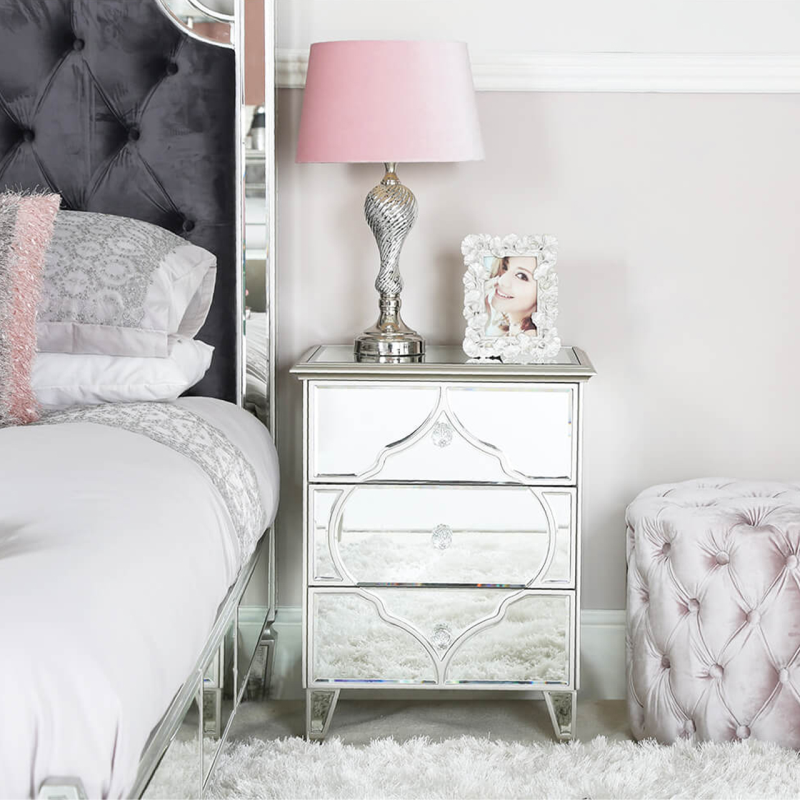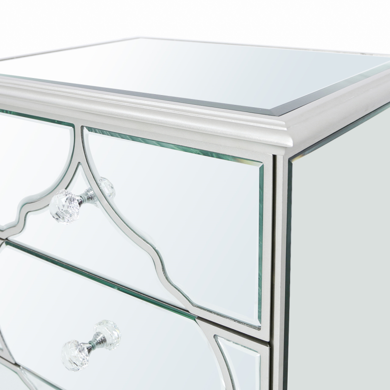Marrakech Silver Mirror 3 Drawer Bedside Cabinet