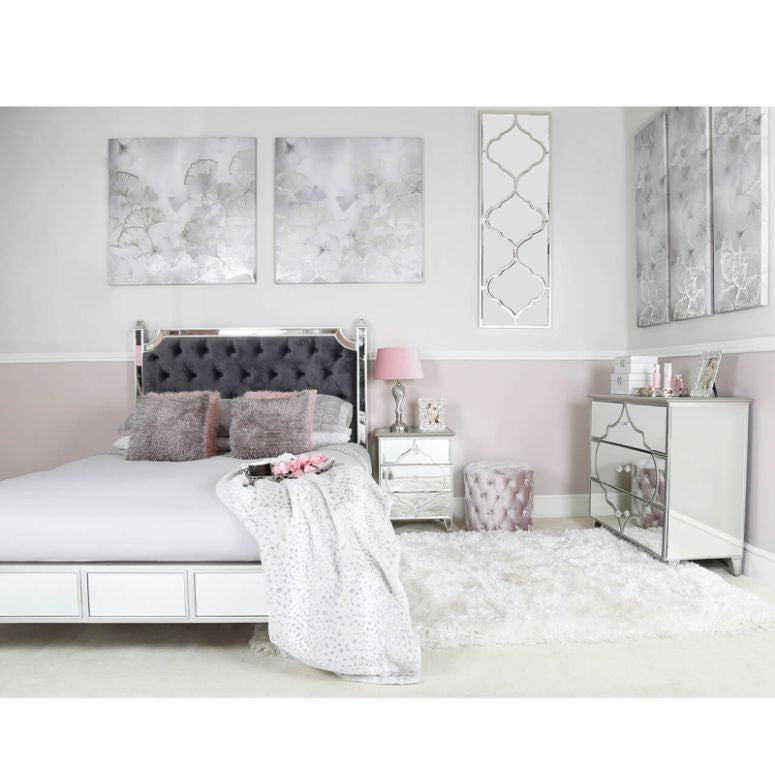 A wonderful addition to any wall the Marrakech vertical wall mirror features a stunning quatrefoil design and silver trim.