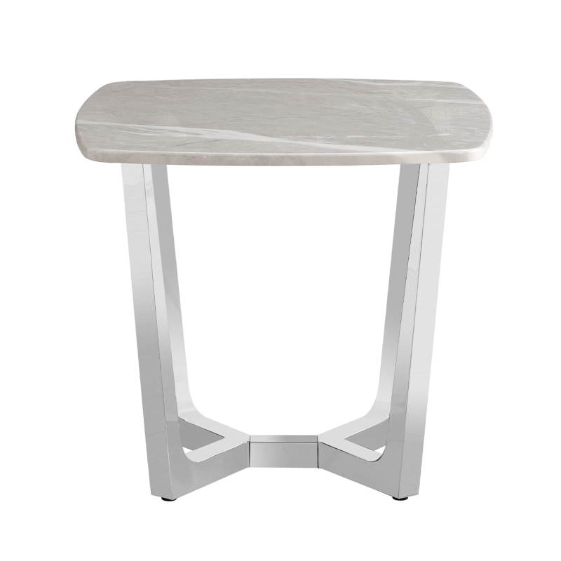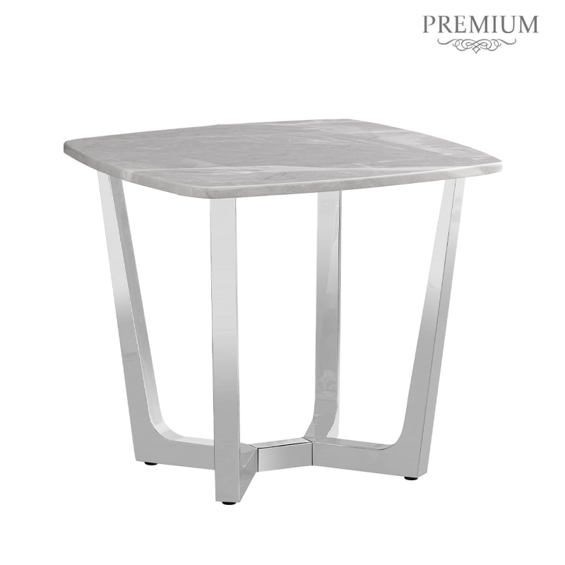 Elevate your space with the Meghan Chrome Metal End Table, where sleek design meets practicality. Crafted from premium Stainless Steel, its lustrous Chrome finish exudes modern elegance. The Grey Faux Marble Top adds a touch of contemporary luxury, creating a captivating accent piece. Perfectly sized for any corner or nook, this table seamlessly merges style with function. Redefine your decor with the Meghan End Table, an exquisite addition that effortlessly balances sophistication and versatility.