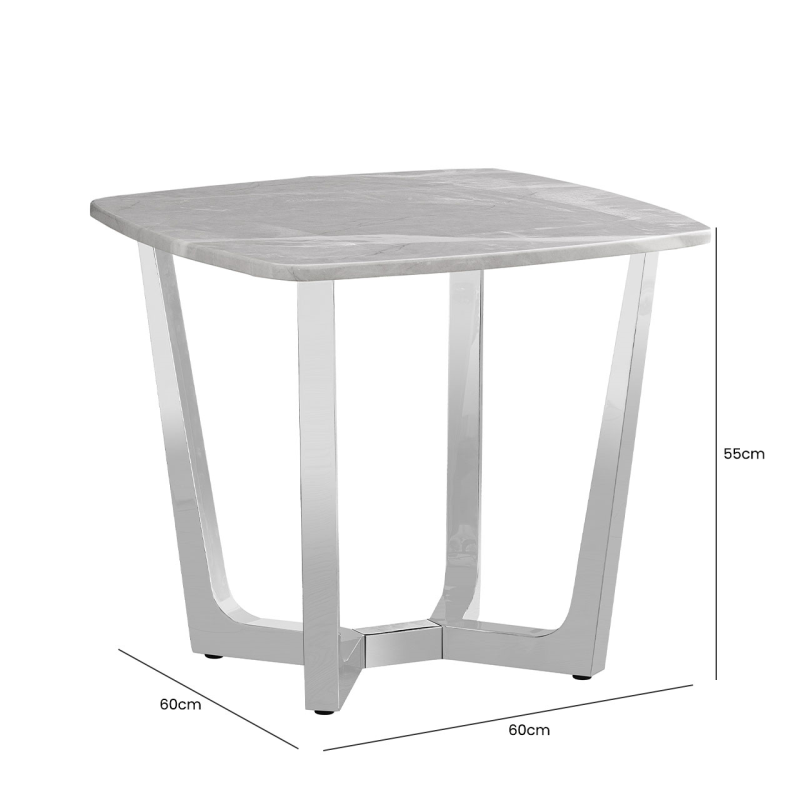 Meghan Chrome Metal with Grey Faux Marble Top End Table