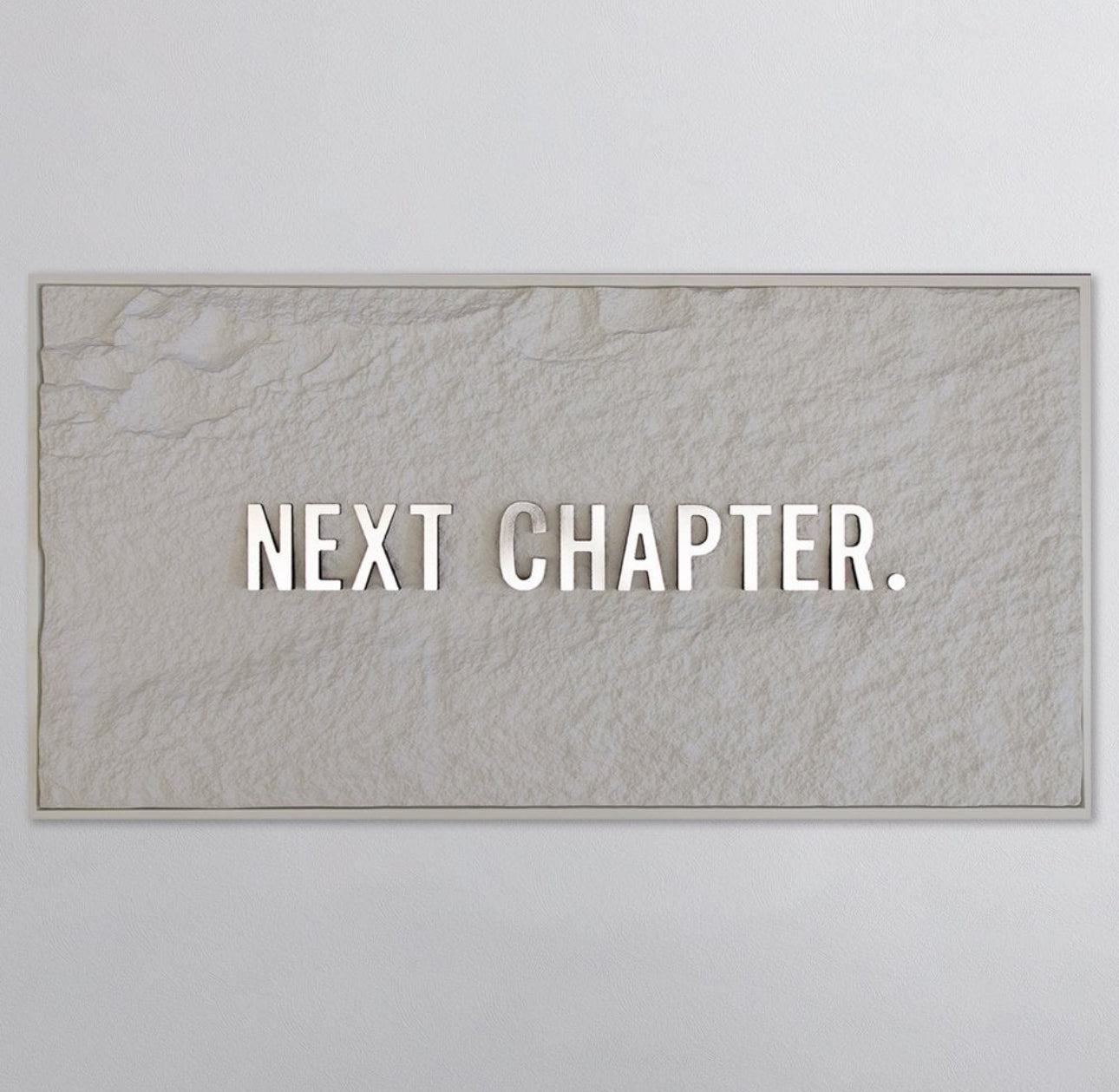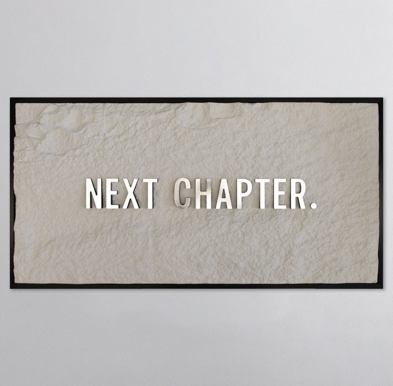 NEXT CHAPTER - SILVER 3D TEXT ON ALABASTER