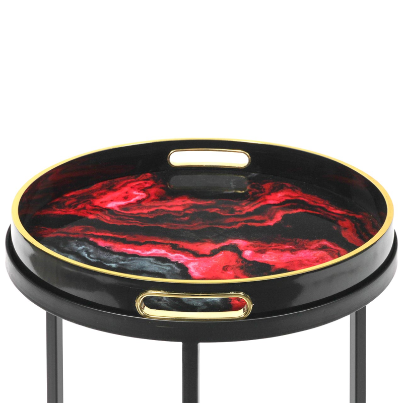 This set includes two tables of varying sizes that can be nested together or used individually, providing both functionality and style. The tables feature a sturdy metal frame in a timeless black finish, perfectly complemented by the tabletops in bold and captivating red. Crafted with durability in mind, these tables are built to withstand daily use while adding a touch of elegance to your space. The vibrant red tabletops create a bold statement and add a sense of drama to any room, making them a focal point of attention.