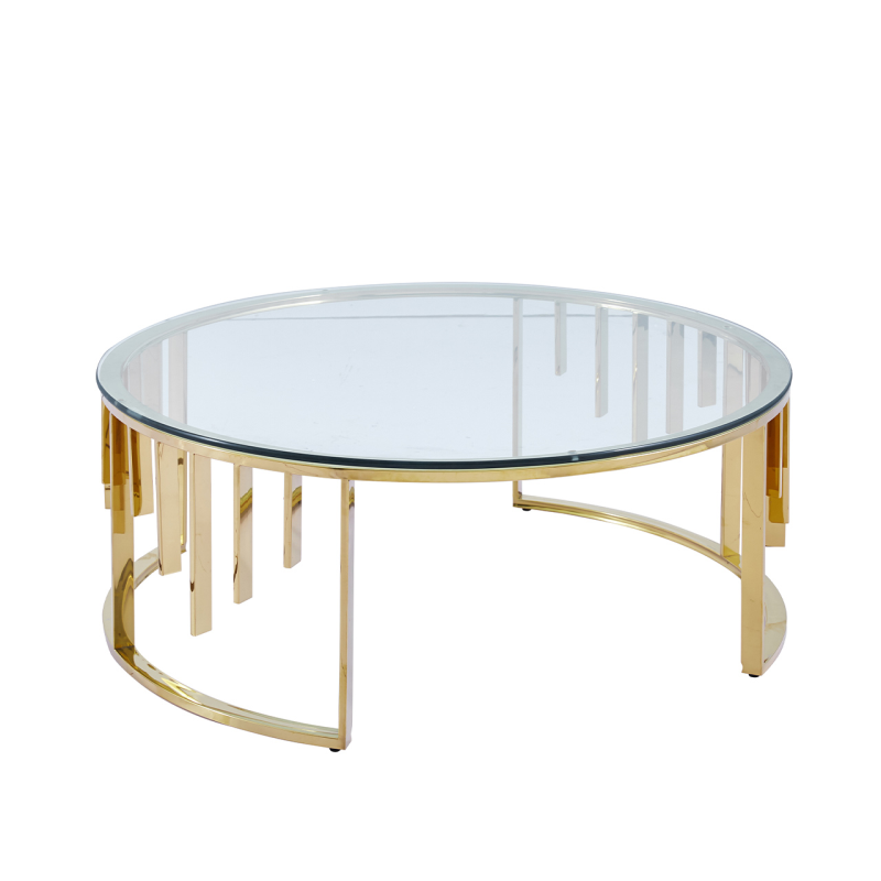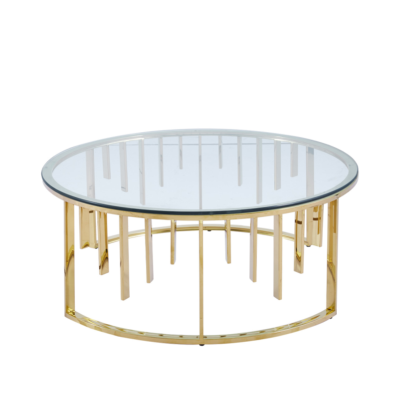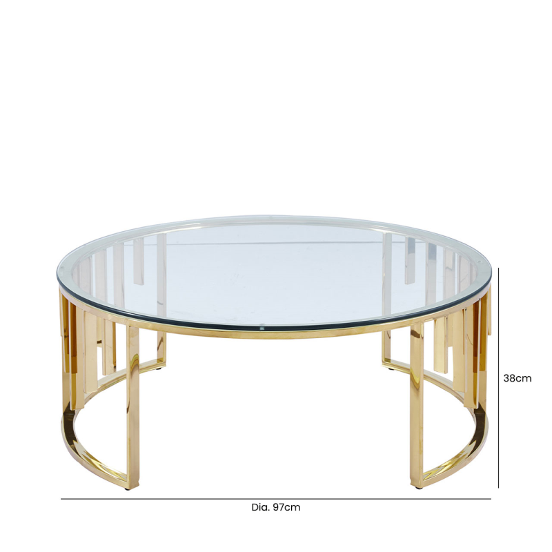 Osen Round Gold Metal with Clear Glass Top Coffee Table