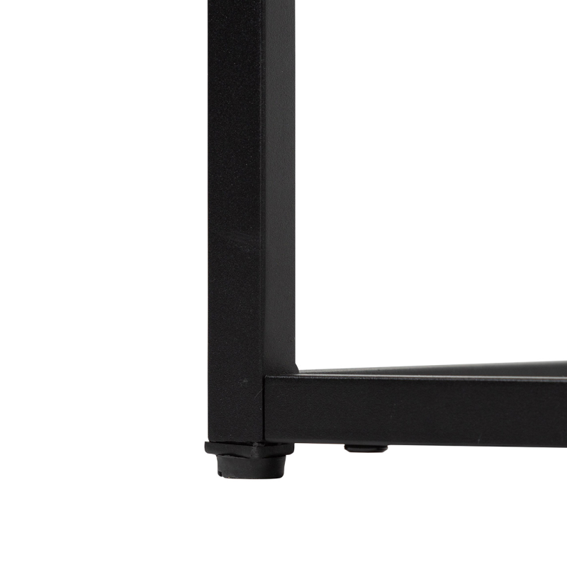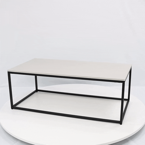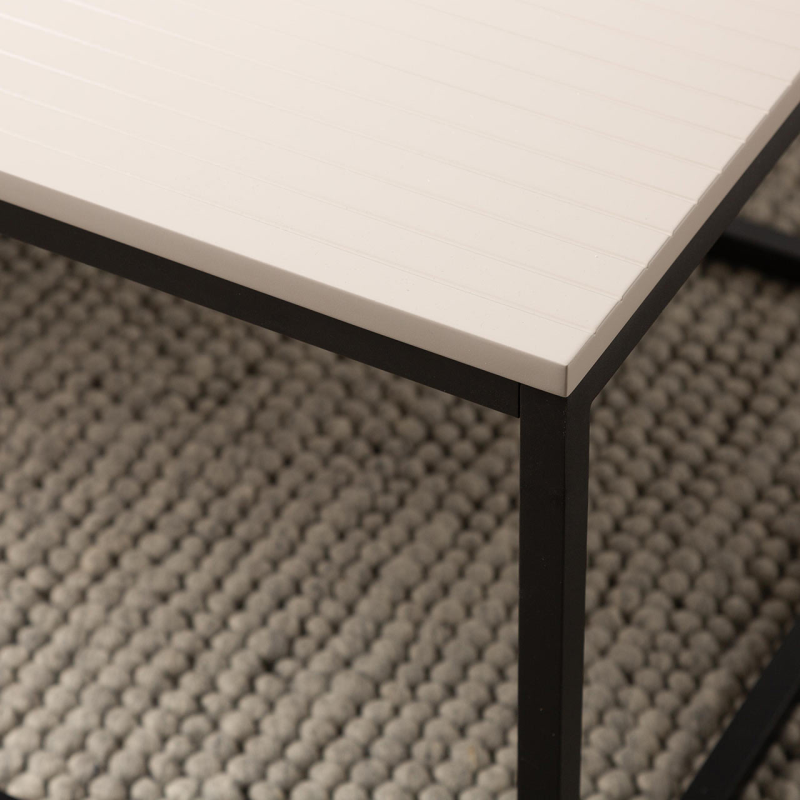 Inject a splash of industrial chic to your interior with the Pagi coffee table. It features a classic black metal frame with a striking grey wooden, linear patterned top.