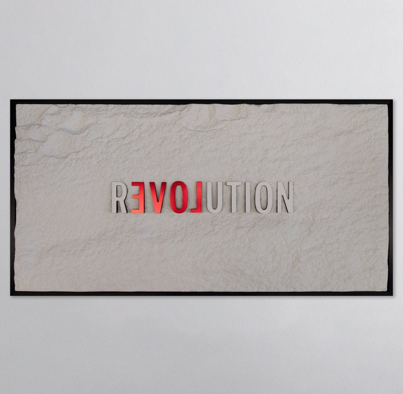 REVOLUTION - WHITE & RED 3D TEXT ON ALABASTER