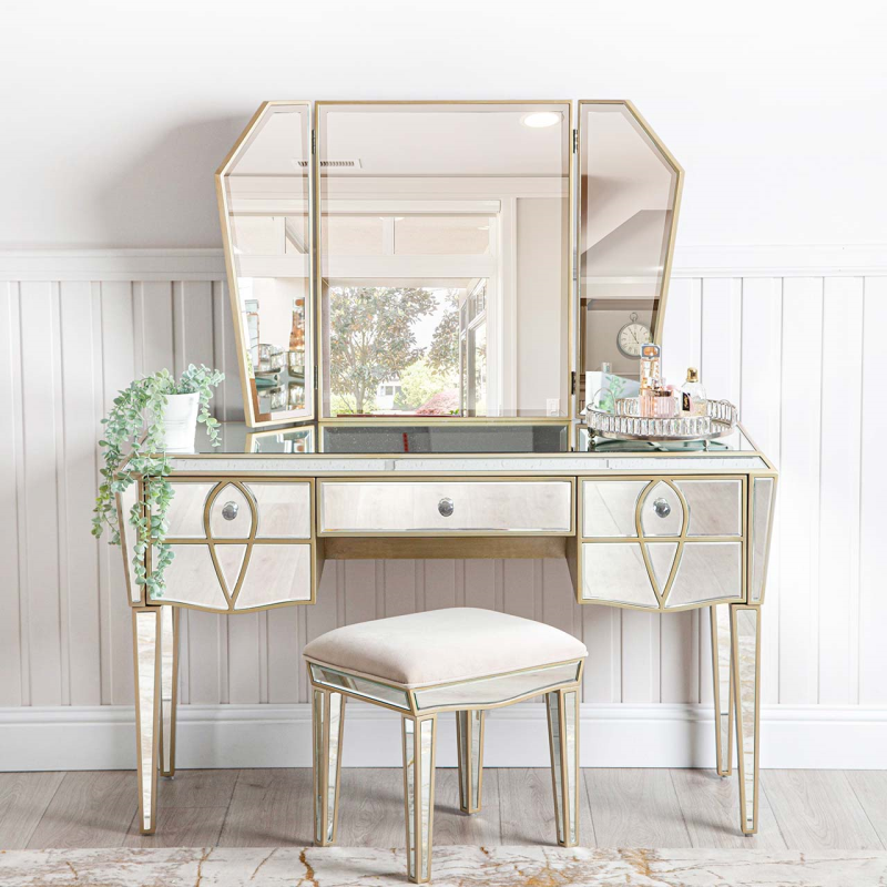 Pristina Mirror Champagne 3 Drawer Dressing Table