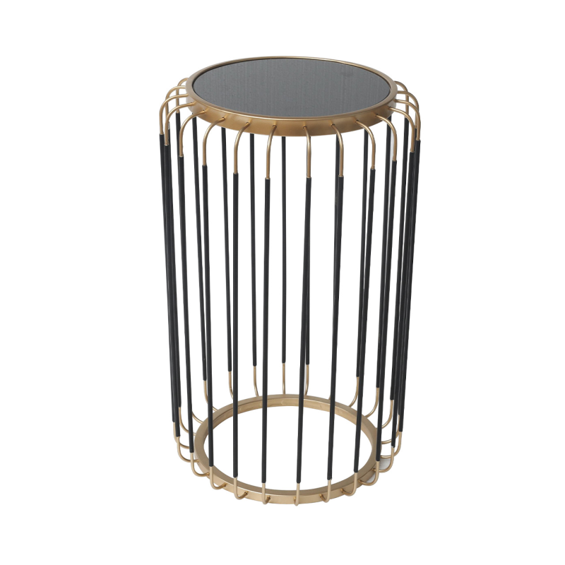 Set of 2 Black and Gold Metal with Black Mirror Top Nesting Tables, featuring a stunning combination of elegance and functionality. These round-shaped nesting tables are designed to elevate your living space with their sleek and sophisticated design.