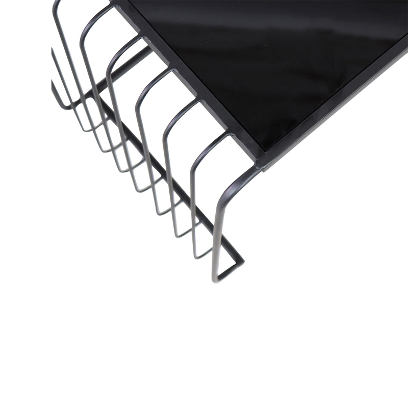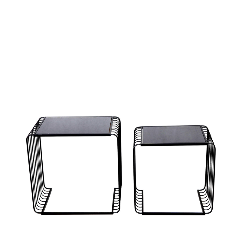Set of 2 Black Metal with Black Glass Top Nesting Table