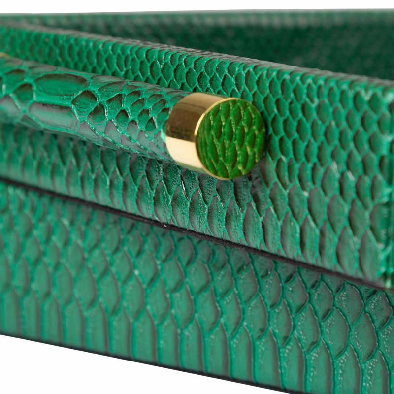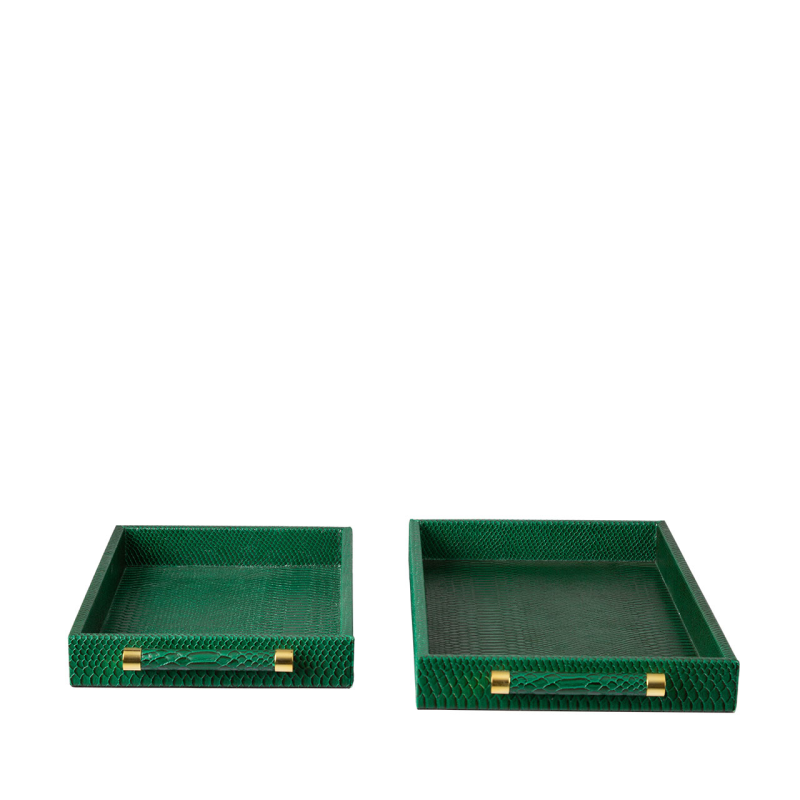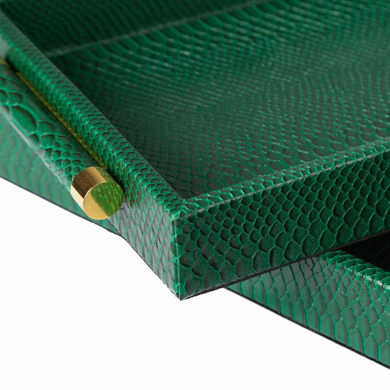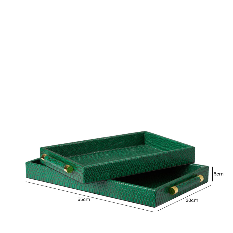 Set of 2 Faux Snake Leather Tray Green