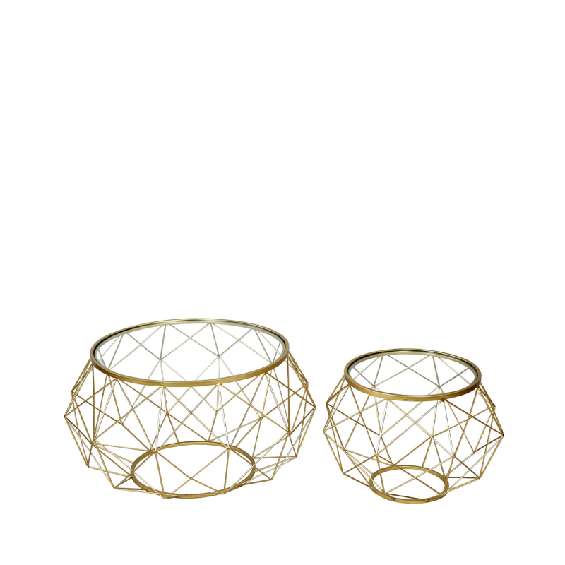 Set of 2 Gold Metal Mesh Coffee Table with Glass Top