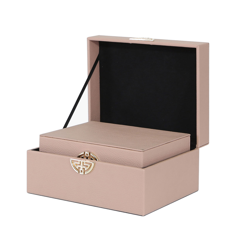 Value Set of 2 Rose Pink and Gold Faux Leather Jewellery Boxes