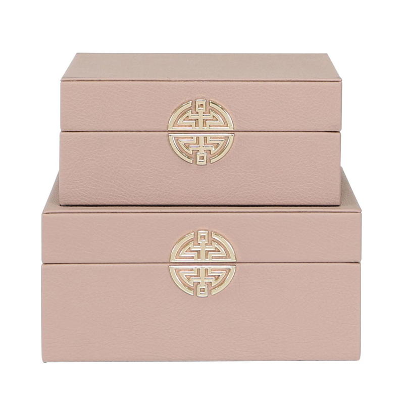 Set of 2 Rose Pink and Gold Faux Leather Jewellery Boxes