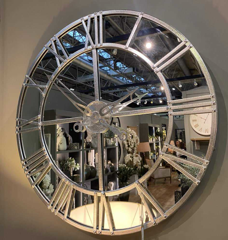 This is the Silver Foil Mirrored Wall Clock, at 86cm across and 13cm deep this would make a statement piece on any wall.