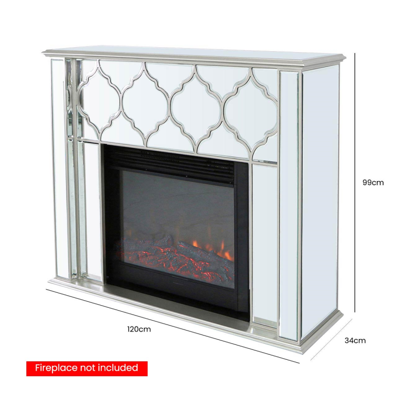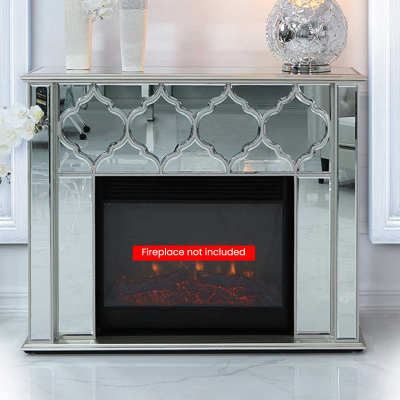 The gorgeous, contemporary Marrakech Electric Fire surround is Moroccan-inspired glamour complete with shiny mirror paneling and stunning quatrefoil designs. The fireplace is not included.