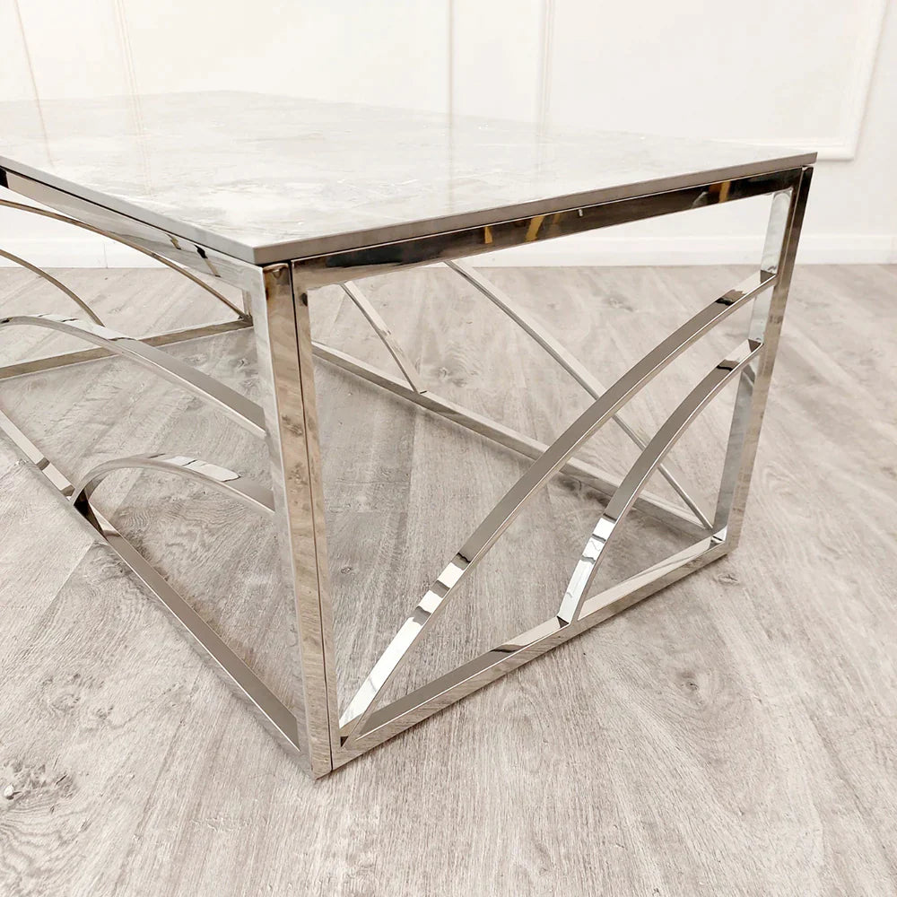 Stella Chrome Coffee Table with Stomach Ash Grey Sintered Top