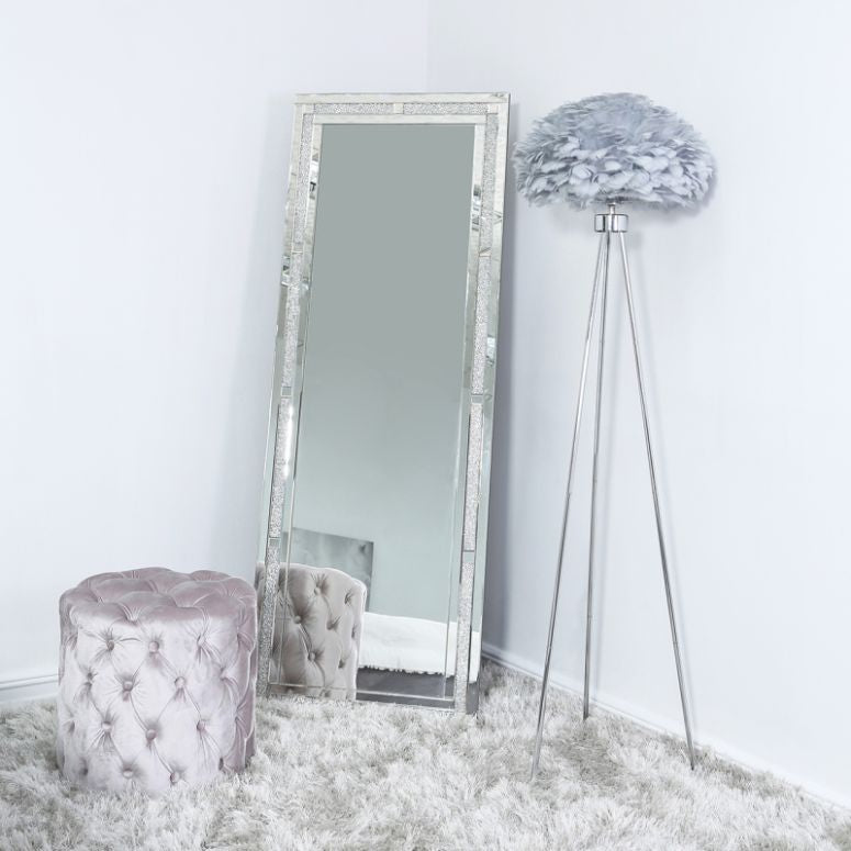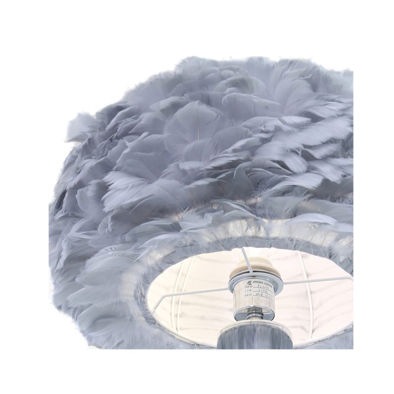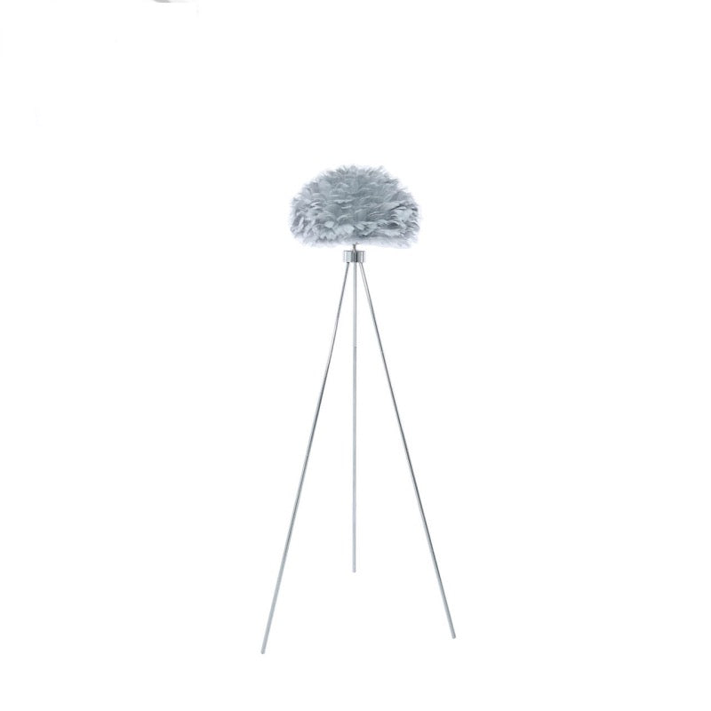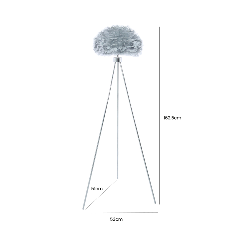 Tripod Floor Lamp with Grey Feather Shade. This product comes with a UK EU Dual Plug. You can now sell this product to customers from all over Europe and the UK.