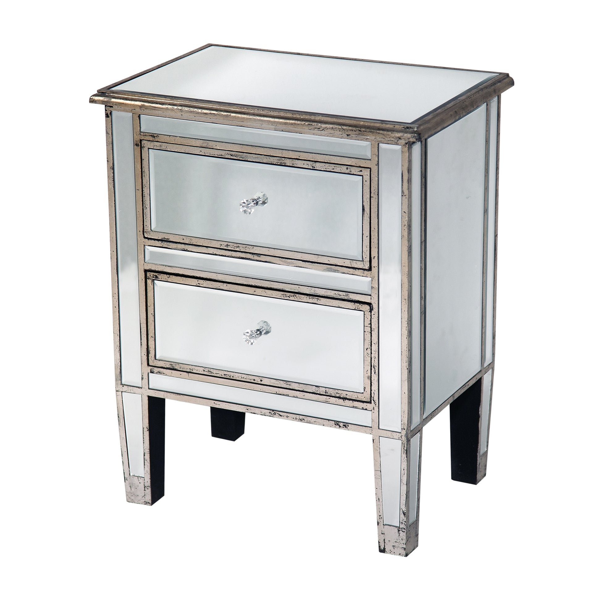 Vintage Venezia Mirrored Bedside Table - Antique Silver