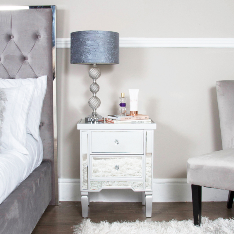 Vista 2 Drawer Silver Wood And Mirror Bedside Cabinet