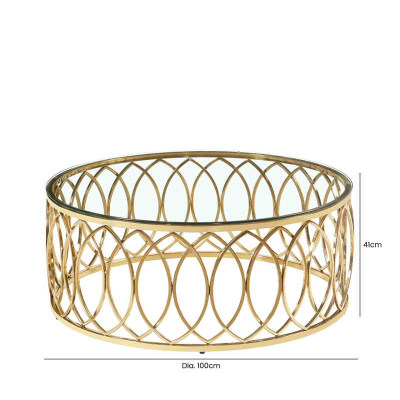 The Wilson Gold Metal and Glass Coffee Table is an embodiment of timeless luxury and contemporary design. Crafted with premium Stainless Steel, its radiant Gold finish exudes opulence and charm. The clear Glass top adds a touch of elegance, creating a mesmerizing visual display. This coffee table is more than just furniture; it's a statement piece that elevates your living space. Immerse yourself in the allure of the Wilson Coffee Table, where form meets function in the most exquisite way. Redefine your decor with a touch of glamour and sophistication.