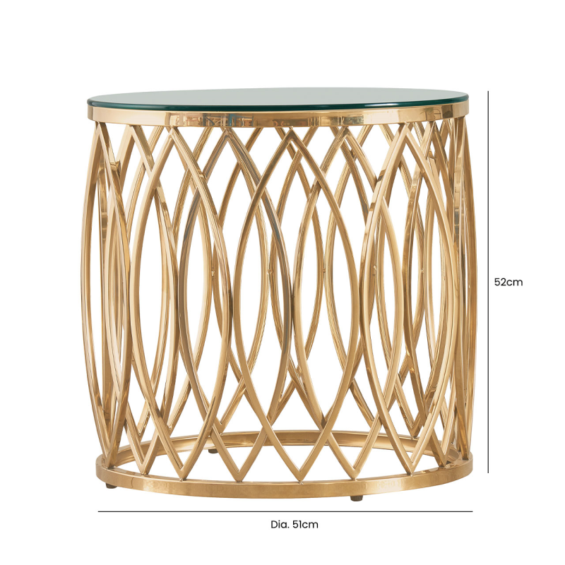 The Willow Gold Metal and Glass End Table a fusion of opulence and practicality. Crafted with premium Stainless Steel, its radiant gold finish adds a touch of glamour to your space. The transparent glass top provides a contemporary allure, allowing you to showcase decorative accents with finesse. This end table is more than just furniture; it's a reflection of your sophisticated taste and an invitation to elevate your decor. Redefine your living area with the Willow End Table, where luxury meets functionality in an exquisite dance of design. Experience a new level of elegance that complements your unique style effortlessly.