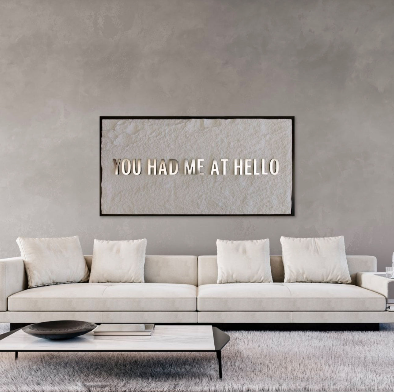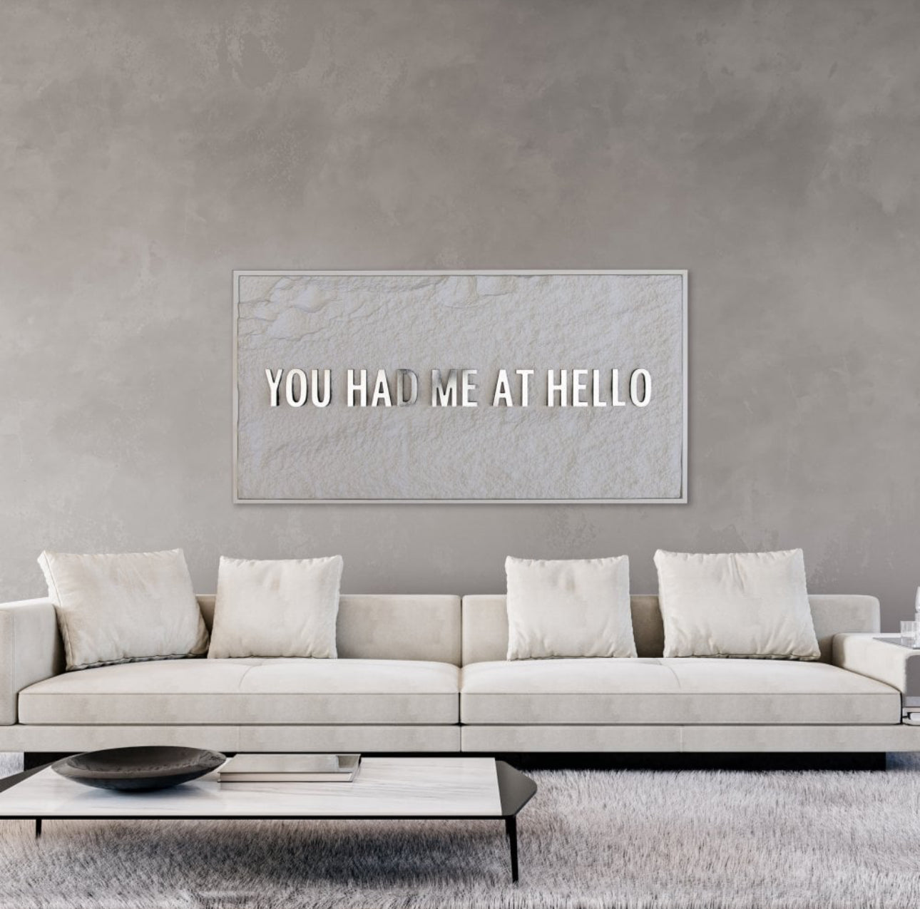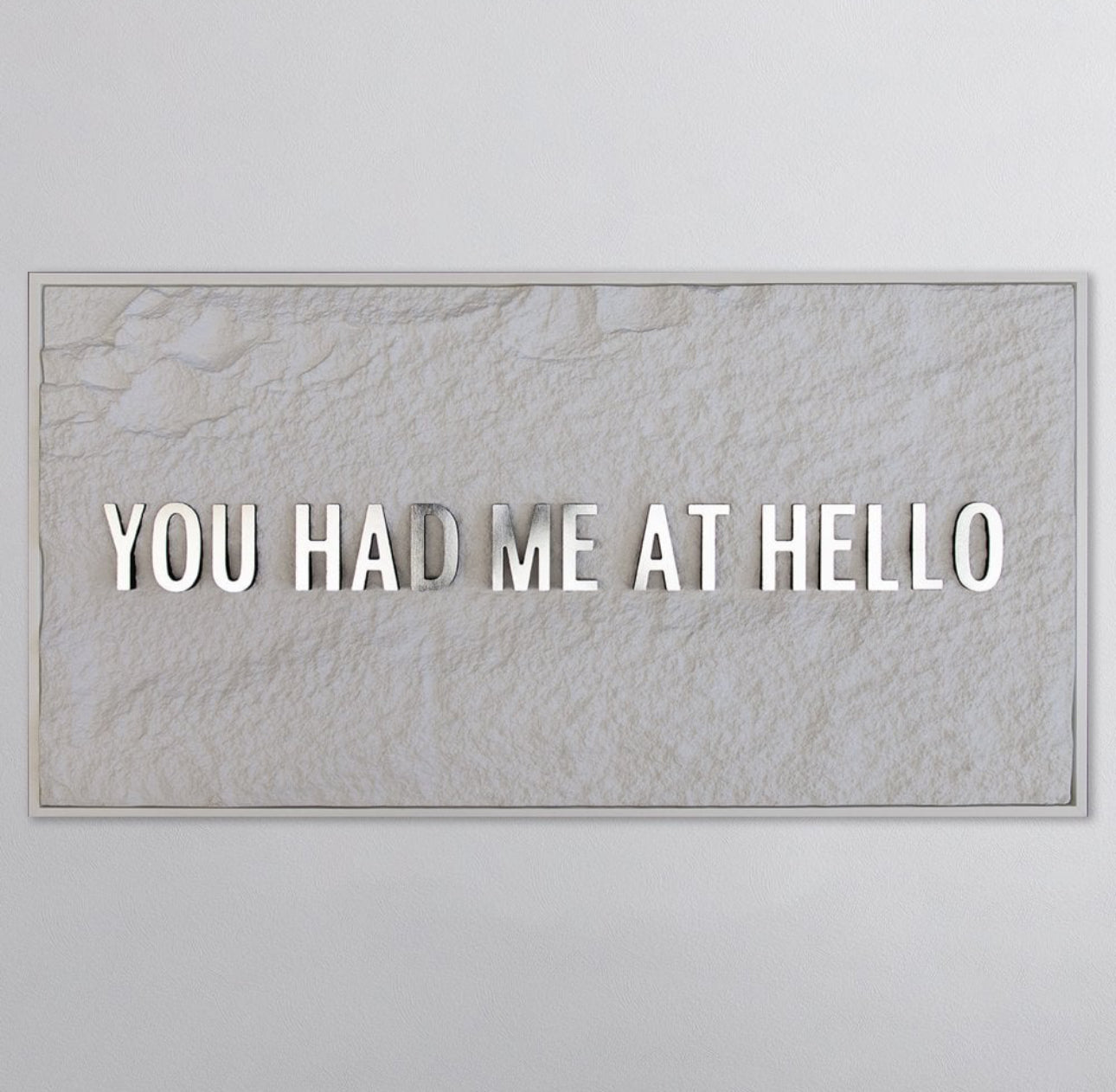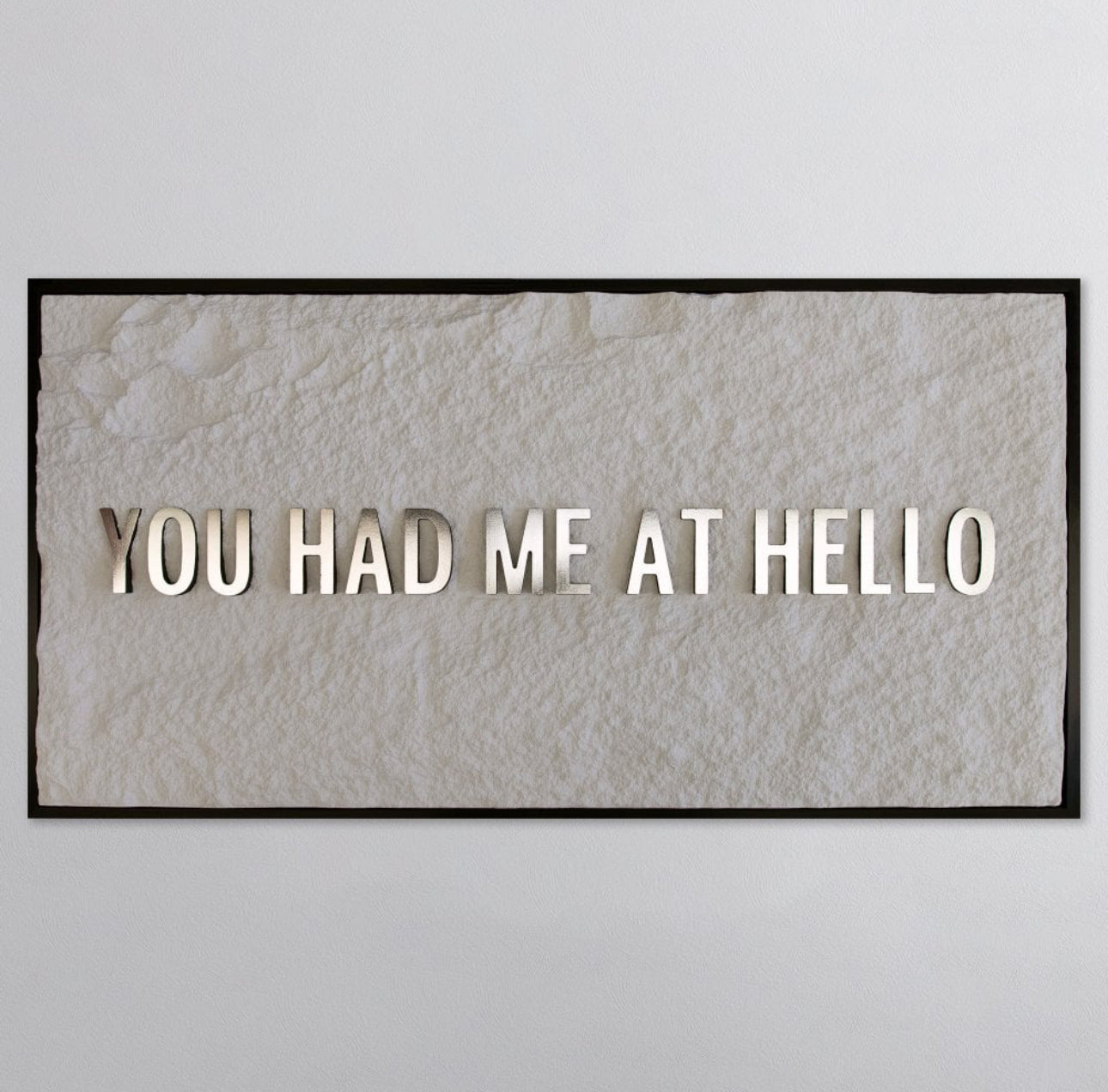 YOU HAD ME AT HELLO - SILVER 3D TEXT ON ALABASTER